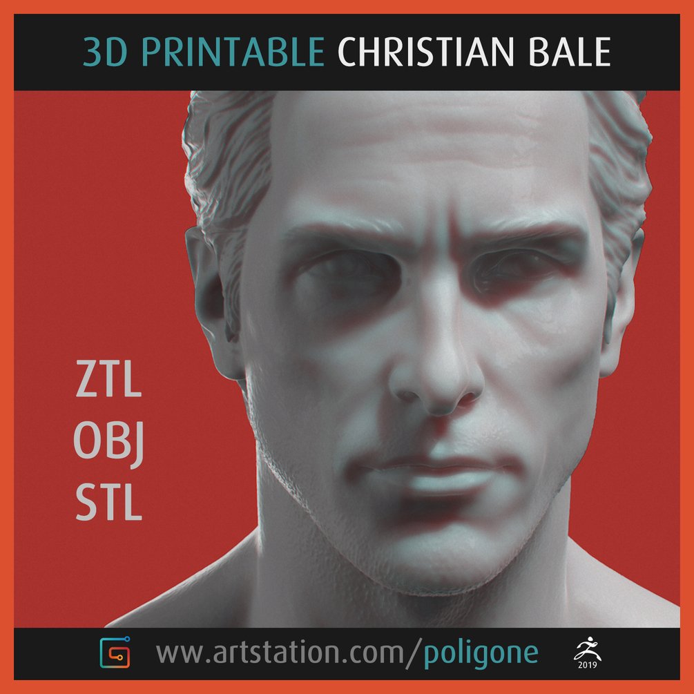 - ZTL (ZBrush 2019) file: Sculpt of Christian Bale head and 3D Printable file (solid).